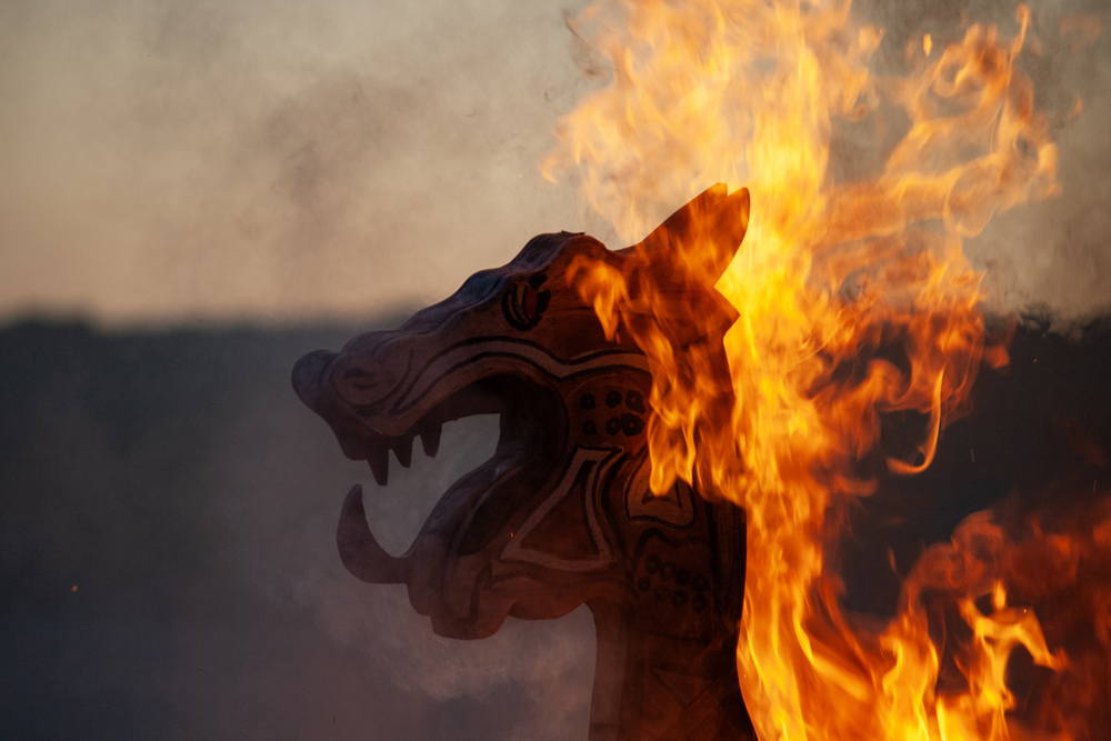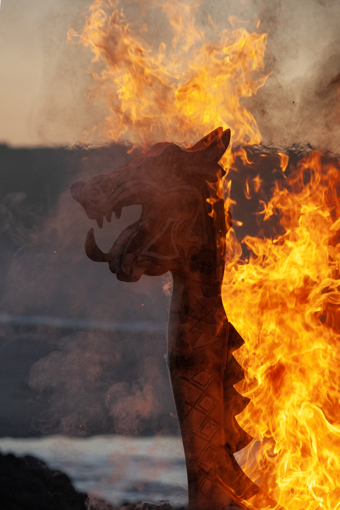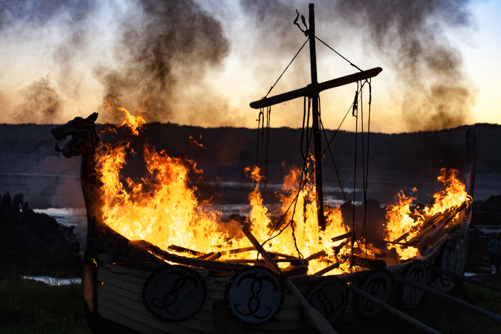A Viking parade to the harbour took place on 18 August 2012, followed by the burning of a replica longship.