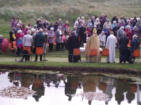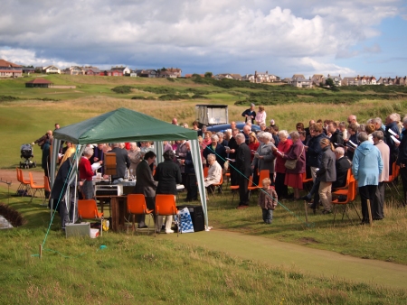The three churches in the community, Cruden Parish Church of Scotland, Cruden Bay Congregational Church and St James Scottish Episcopal Church gathered by the 17th hole on Cruden Bay golf course where still exists today St Olaf’s Well to worship