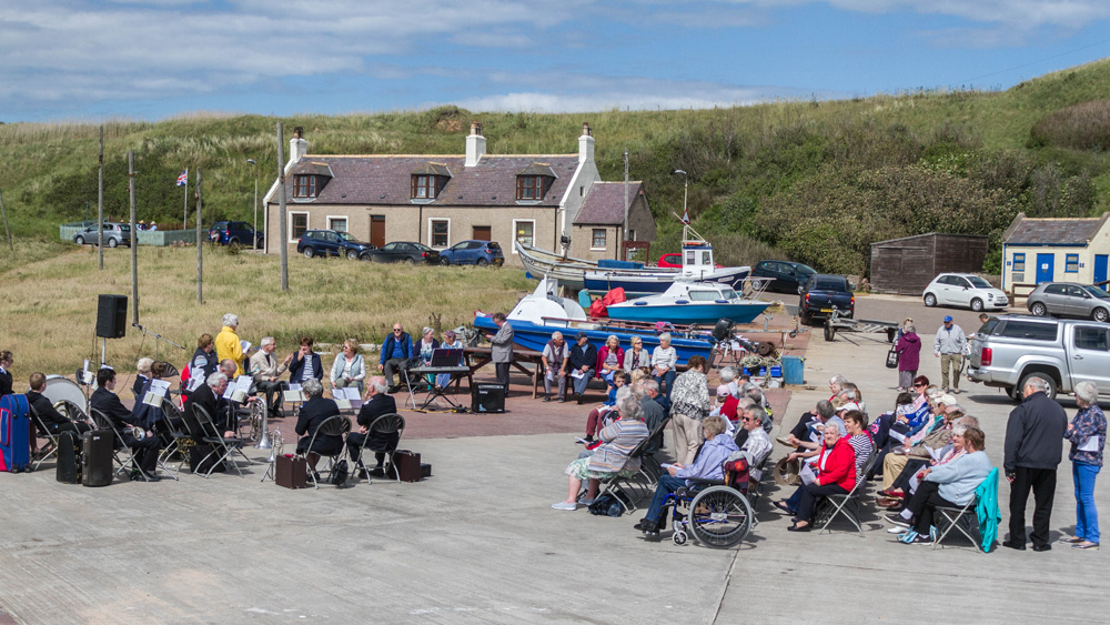 Sunday 17 June was a fine sunny afternoon when about one hundred gathered at Port Erroll harbour to join together in a Songs of Praise when the musical accompaniment was provided by the Peterhead Salvation Army Band and our own Stephen Calder and a reflection was given by Rev Dr Denis Berk from St James’ A wonderful time of fellowship was enjoyed by all present while we sang our way through ten well known hymns, with many saying it demonstrated the presence of the Holy Spirit in our Community. The afternoon finished off with a barbeque provided by Jon Roberts. Our grateful thanks are due to all, including the Harbour Trustees, a who made the event the success that it was.