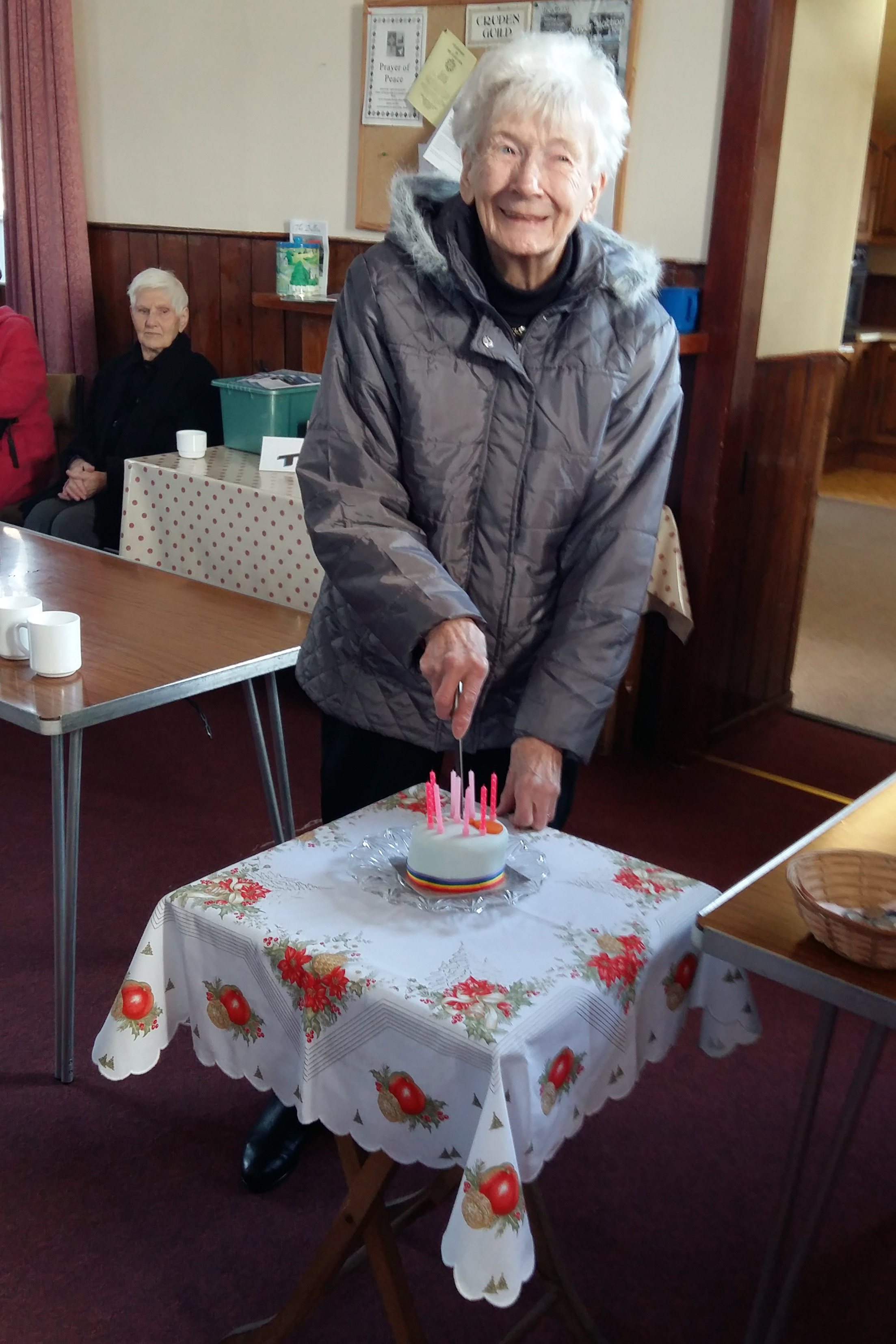 Betty Morris celebrated her 90th birthday on 8 January 2018. Her friends in the congregation marked the occasion with a small cake at coffee time after church.