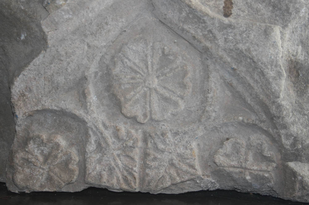 There are two pieces of stone which were discovered in 1912 when the south wall was partly taken down to build the extension for the organ. These stones must have formed part of the church previously built on this site. One is carved in a design which suggests the top of an archway or perhaps part of a tombstone, the other has letters carved on it. It is impossible to be sure what the letters stand for although it has been conjectured that they might be the initials of "men of God". These stones had been used in the building of the present church and were only rediscovered when the 1912 renovation got underway. Perhaps more of these very old and decorative stones were used in 1776 and now lie buried in the masonry or some other part of the church.