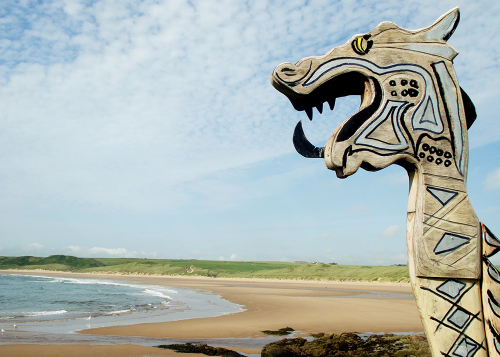 Over a thousand years ago. It's a long time but in the summer of 1012 there was great killing in Cruden The Vikings had established a settlement on Hacklaw, the hill closest to the beach. King Sweyn Haraldsson of Denmark sent his 17 year old son Canute to reinforce the settlement and, if possible, to defeat the Scots army. Canute did not succeed. King Malcolm II of Scotland brought his army to Cruden and the battle began. It was fought on the flatlands below Hacklaw, where the golf course now is, but as the day went on the fighting spread inland and relics of the battle have been found over a four mile swathe of countryside. The date on which the battle was fought is not known, only the year. It would though have been in summer. The fighting season was fitted in between the sowing of the crops and the bringing home of the harvest. The prayers for the dead and the remembrance of the battle takes place in Saint James's Church, Cruden Bay on the Sunday closest to Saint Olaf’s Day.