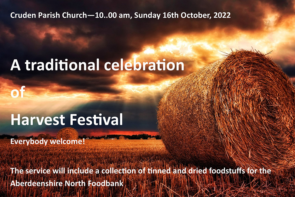 .The congregation at the Harvest Festival Service on Sunday 16 October 2022 brought along donations for Northeast Aberdeenshire Foodbank