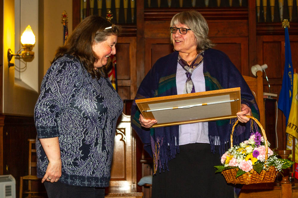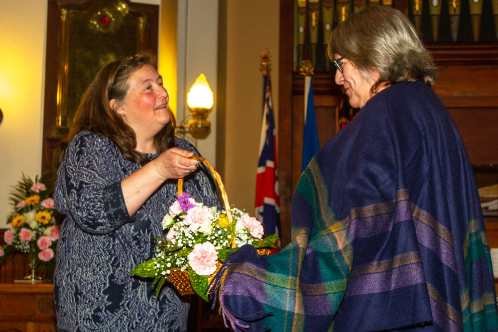 Flowers and a framed picture of the church were presented to Ali McLeod, the Interim Moderator.