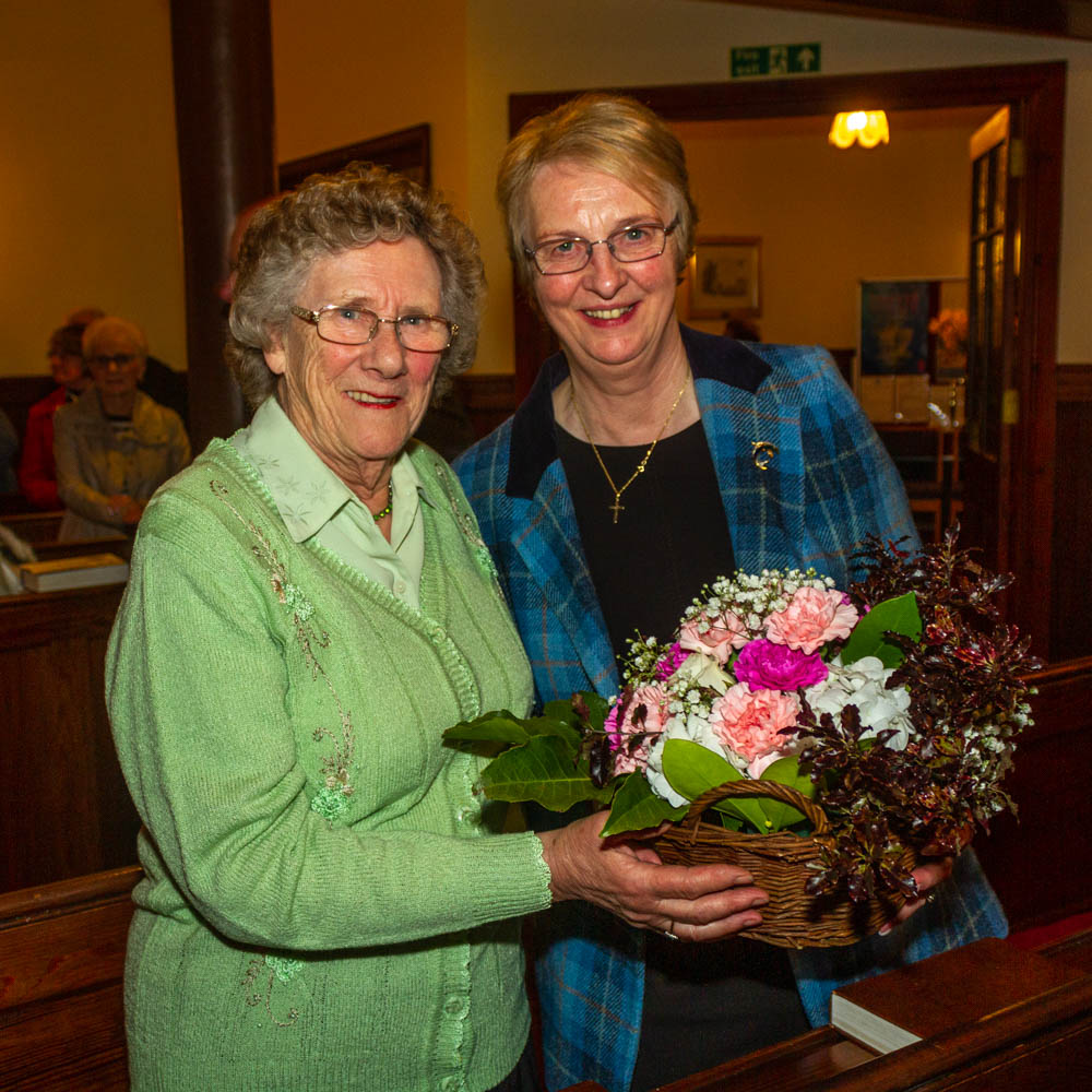 The Moderator, Mrs Maureen Esson received a basket of flowers.