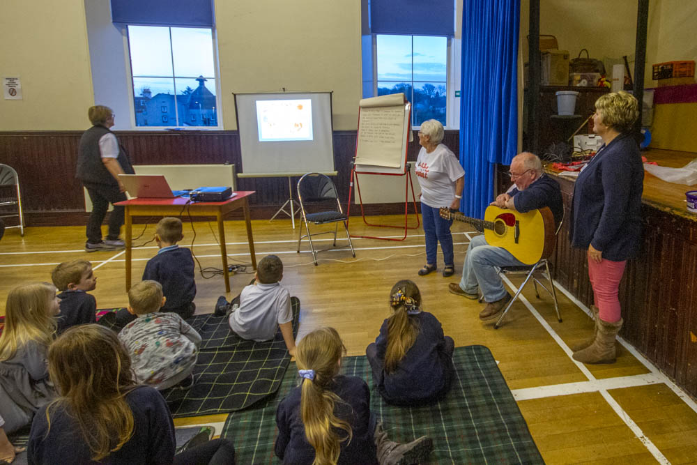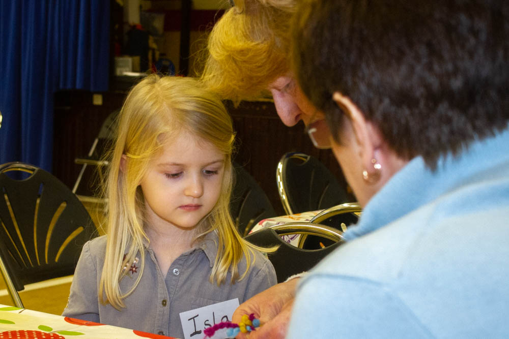 Messy Church met on 15 November 2018 in Hatton Public Hall for the usual fix of muisic, stories, crafts, "Messy Science" and of course, food. Activities centred round making footprints in the sand and friendship braclets, together with pictures to colour and games to play.