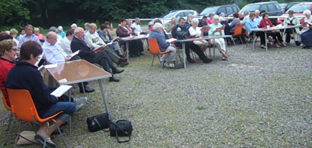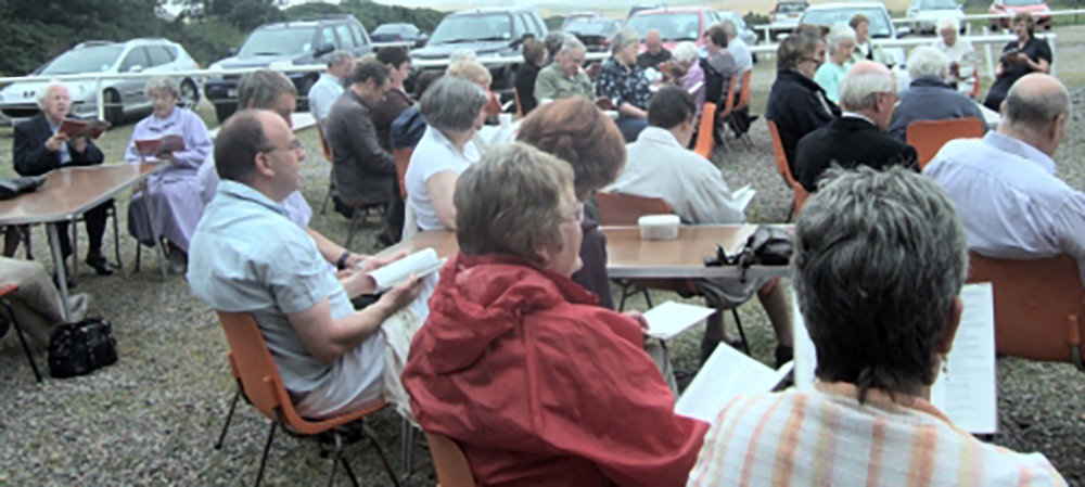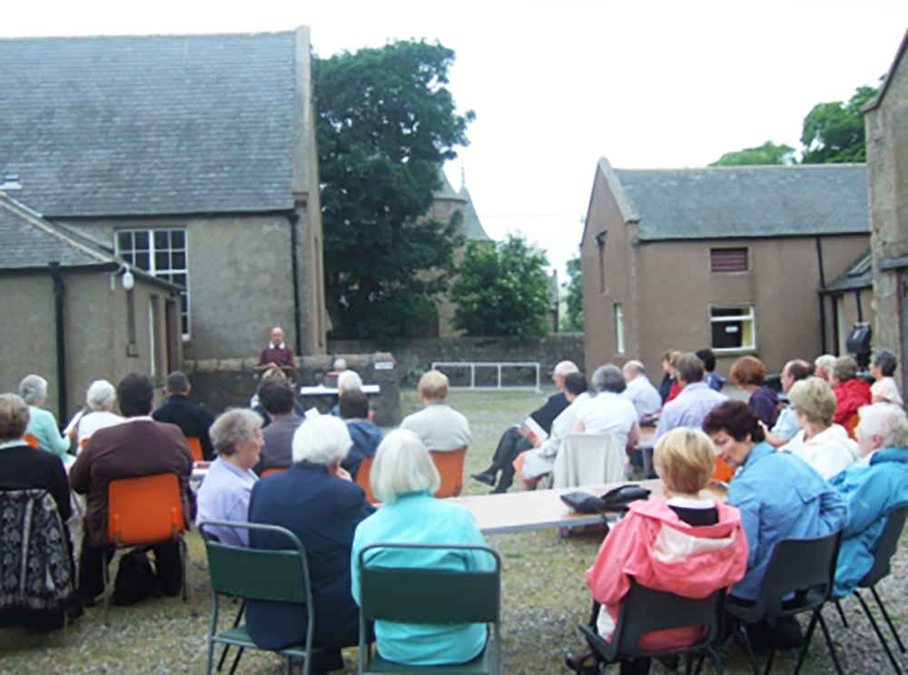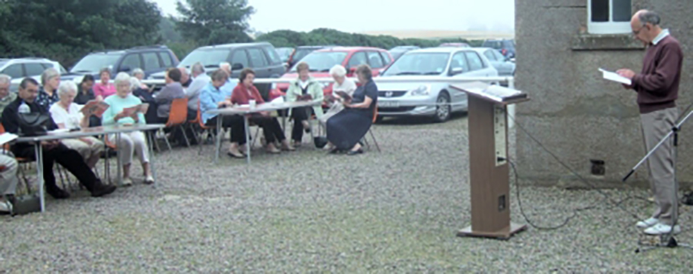 At the end of July 2008, Cruden Church organised a successful afternoon which started with a car treasure hunt, continued with a barbecue in the Old Hall car park and concluded with an open air service. The photographs taken during the service show that, while the afternoon remained dry, the haar was not far away so it was good to have over 50 people sitting under the grey skies praising God through praise and prayer.