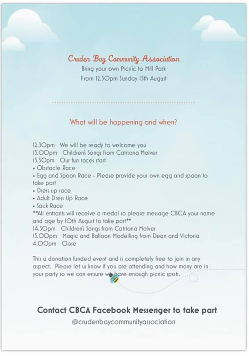 Picnic in the Park – Sunday 15th August (run by the Cruden Bay Community Association)