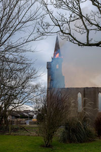 In early 2008, shortly after we stopped using the church the electricity was disconnected by Hydro Electric, they followed their usual practice of removing their main fuses at the meter which was situated just inside the windows on the gable end of the building facing on to Main Street. There was no electrical supply to the rest of the building and the fire was not caused by an electrical fault.