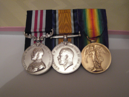 Adrian Smith leant his grandfather's (Pte Peter Smith MM3583 1/5th Battalion Gordon Highlanders) World War 1 medals to the exhibition. The medals are The Military Medal, awarded for acts of gallantry and devotion to duty under fire, The Victory Medal and The British War Medal.