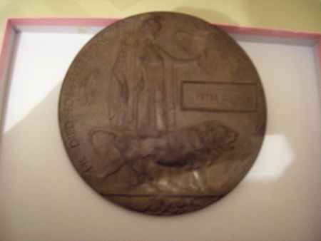 The plaques were made of bronze, and hence popularly known as the "Dead Man’s Penny", because of the similarity in appearance to the somewhat smaller penny coin. 1,355,000 plaques were issued, which used a total of 450 tonnes of bronze,and continued to be issued into the 1930s to commemorate people who died as a consequence of the war.